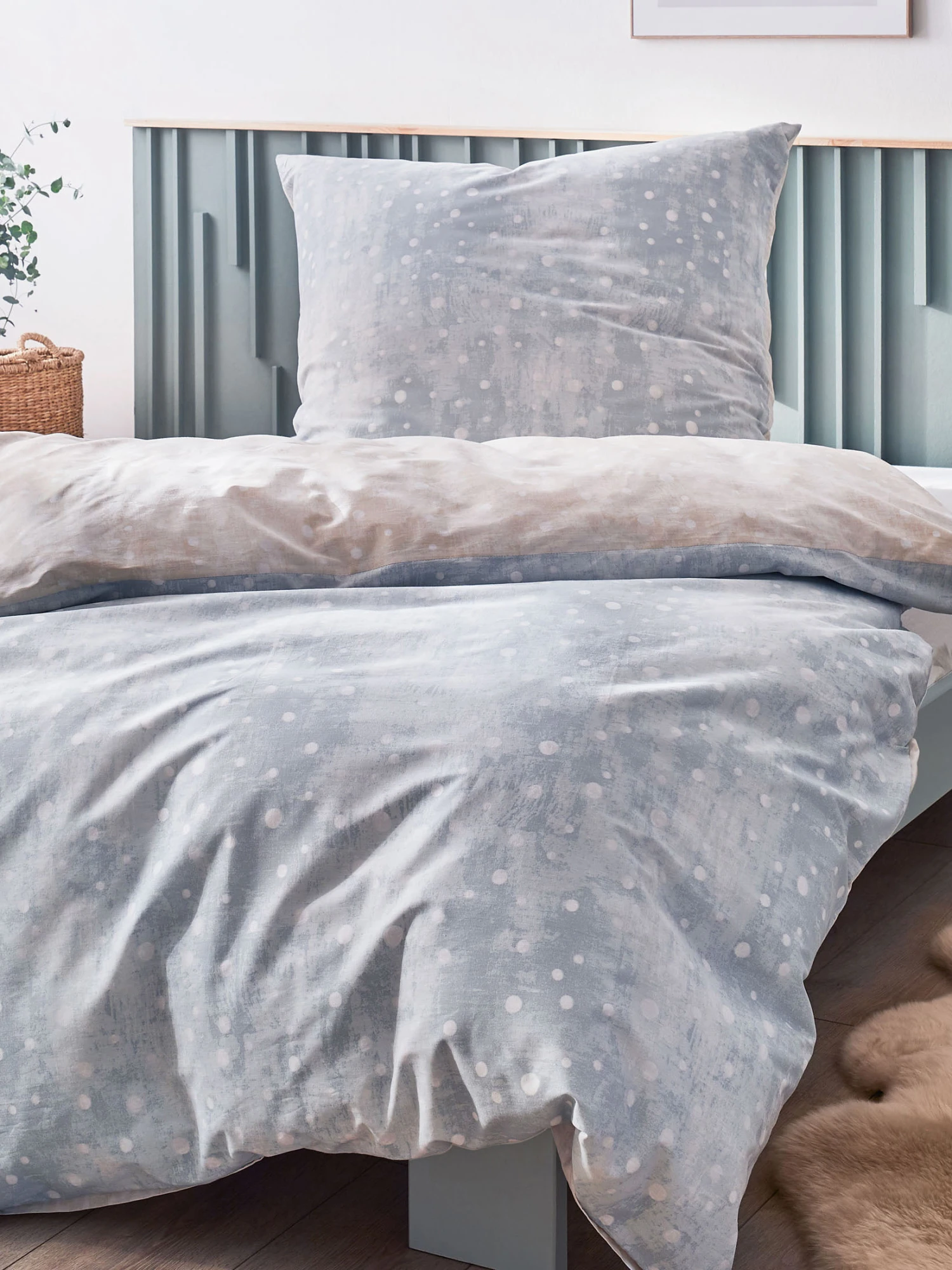 Diese Wendebettwäsche ist aus reiner Renforcé-Baumwolle. Sie ist kühlend im Sommer und wärmend im Winter. Weiche, angenehme Haptik. Mit Qualitäts-Reißverschluss. Oeko-Tex Standard 100.