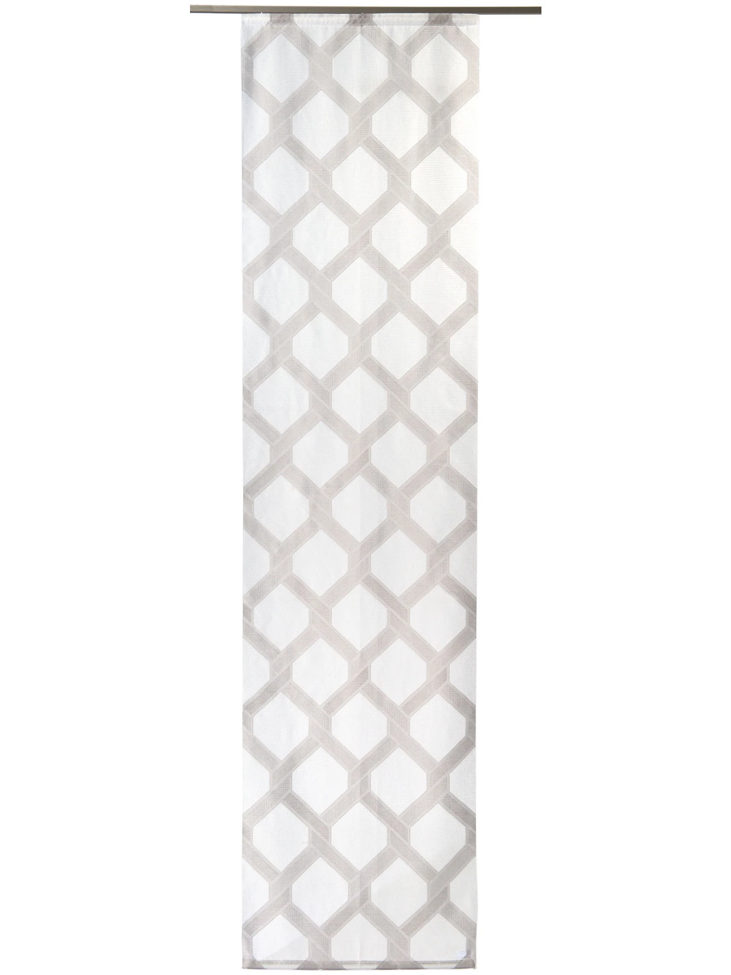 YLVA ist ein Flächenvorhang mit grafischem Wabenmuster. Der Schiebevorhang ist aus 100 % Polyester gefertigt. Öko-Tex Standard 100.