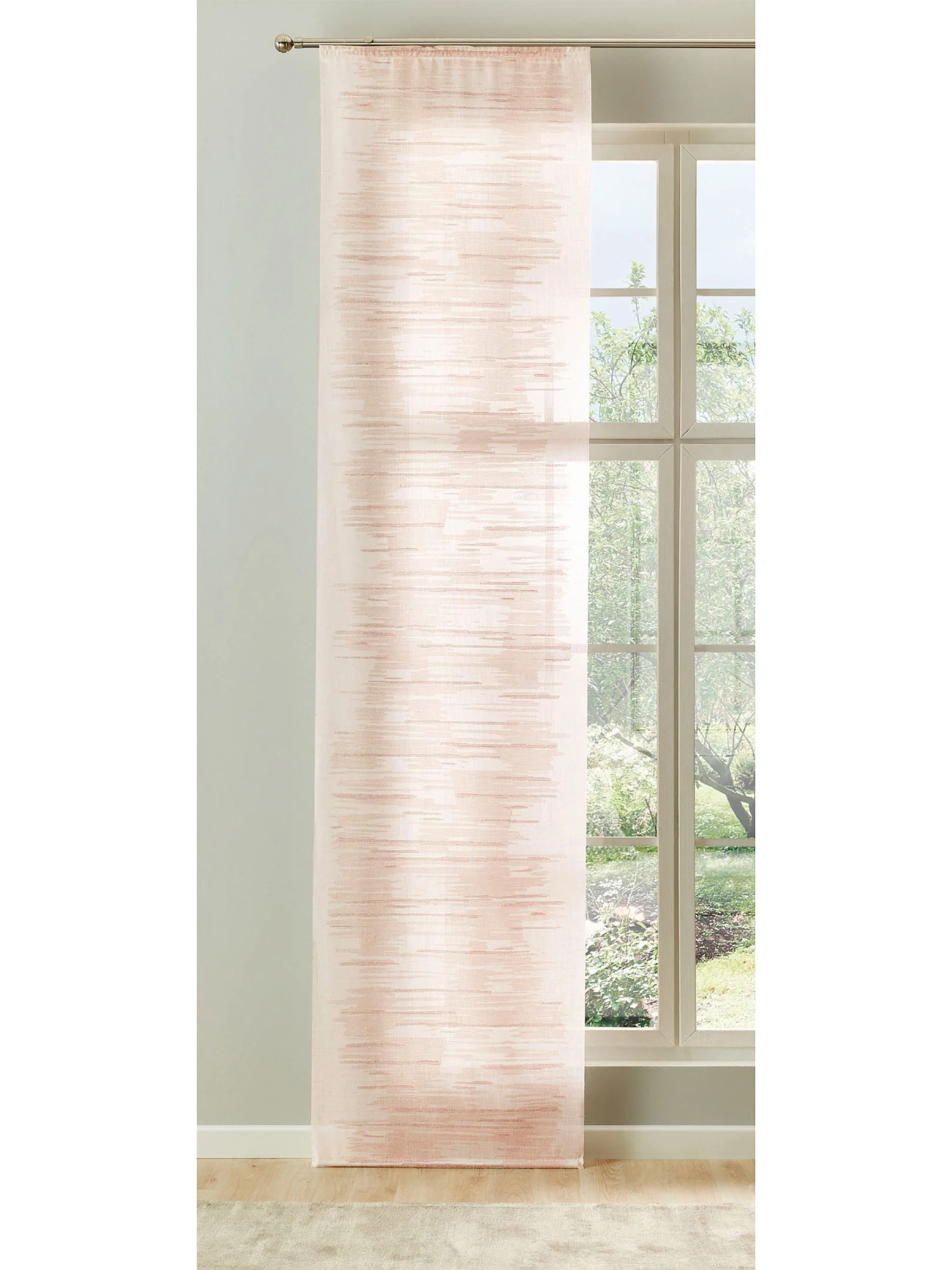 Transparenter Flächenvorhang mit zartem Farbspiel. Erst durch den Lichteinfall wird die interessante Webstruktur von TARA sichtbar. Aus 100 % Polyester. Öko-Tex Standard 100.