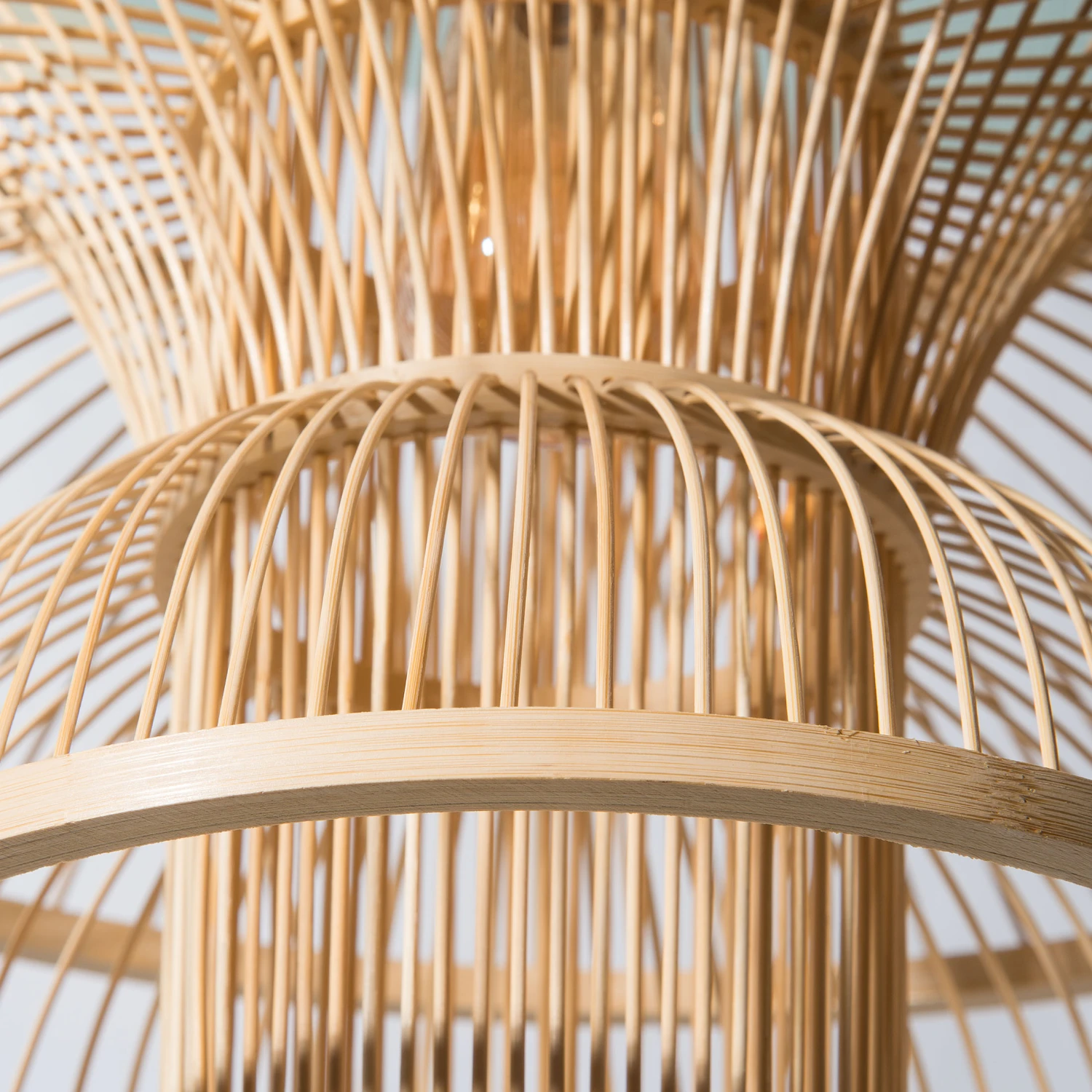 Natur-Bambus. Japandi-Style. Lampenschirm handgearbeitet. Exkl. Leuchtmittel E27, 40W.
