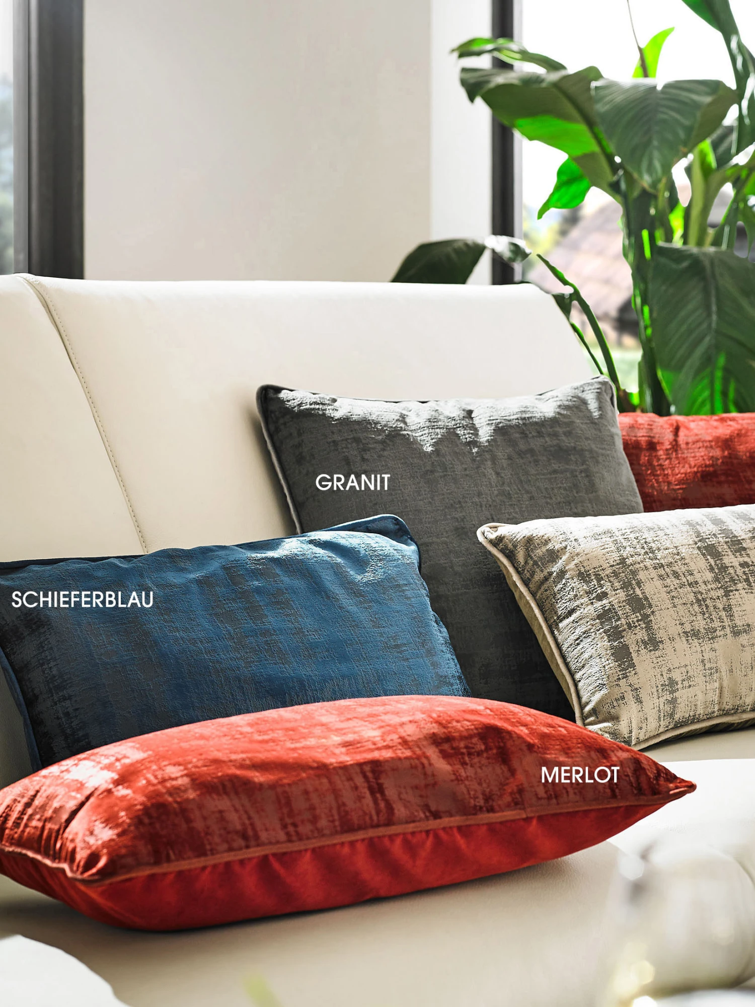 Hier haben wir uns mal die sprichwörtliche Freiheit herausgenommen und für unsere beliebten Vintage-Kreationen ein außergewöhnliches Kissenarrangement entwickelt. Denn hier vereint sich samtartige Exklusivität mit einem leicht changierendem modernen Used-Look. Die Vorderseite haben wir leicht aufgeraut, um den Vintage-Charakter im „Look and Feel“ zu erreichen. Die samtartige Rückseite verleiht dem VELVET TREND-Kissen das exklusive Flair. Kissen mit Reißverschluss inkl. Füllung. Die Hülle ist aus 99 % Polyester und 1 % Chinlon und die Füllung aus 90 % Polyester und 10 % Polypropylen. Oeko-Tex Standard 100. Waschbar bis 30°C.