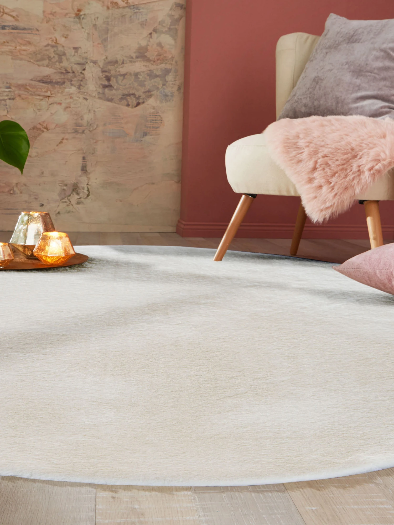 Kunstfell-Teppich. Wärme und Behaglichkeit strahlt dieses gewebte Kunstfell aus. Der Flor aus 100 % extra feinem Polyester ist verführerisch weich. Florhöhe ca. 25 mm.