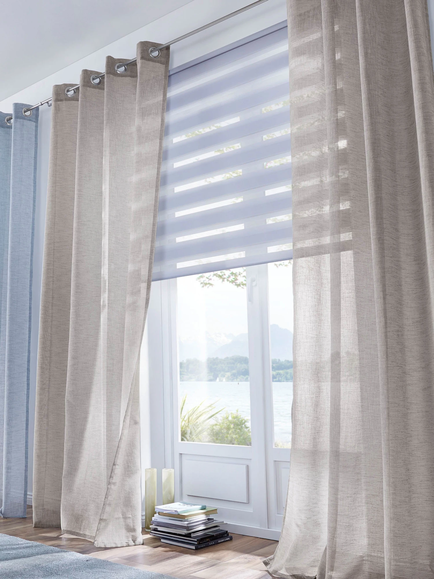 Dem modischen Trend folgend zeigt sich MADOX in feinen Naturtönen. Die unaufdringliche Farbgebung ermöglicht die freie und vielseitige Gestaltung des eigenen Stils. Der leinen-strukturierte Stoff umschmeichelt den Raum mit seiner natürlichen Note. Pflegeleichter, leicht fließender Ösenschal (8 Ösen) aus 100 % Polyester. Ca. 140 x 245 cm.