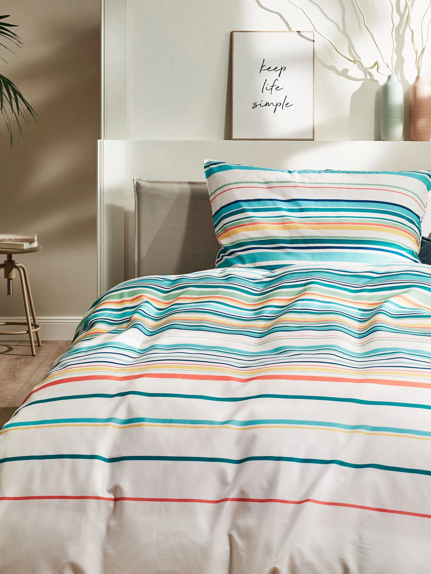 Leichtigkeit, Sommerfrische – nach einer Nacht mit dieser anschmiegsamen Bettwäsche aus reiner Baumwolle in Renforcé-Qualität wird man den Tag frisch und ausgeruht beginnen. Oeko-Tex Standard 100.