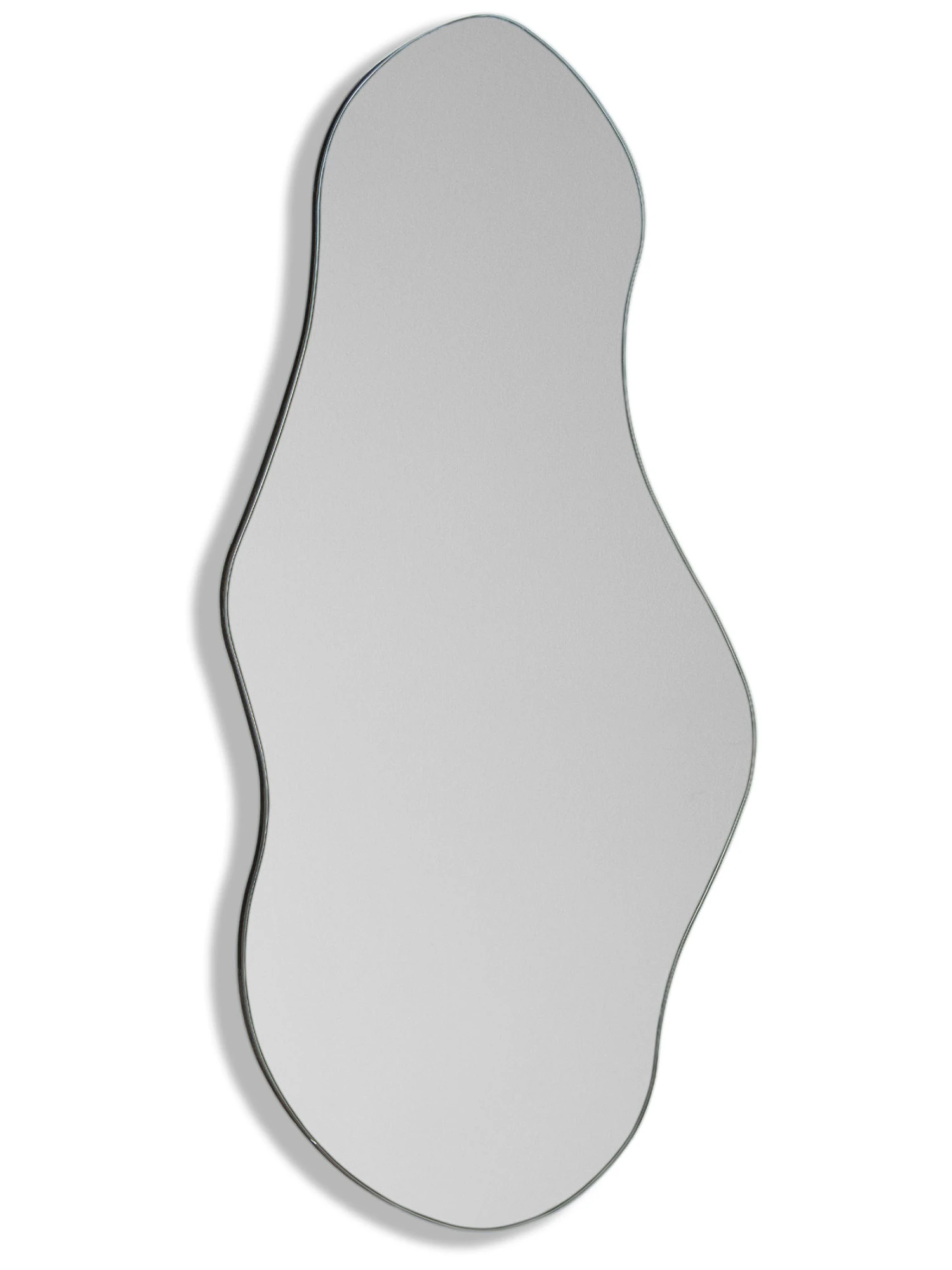 Organisch geformter Spiegel ohne Rahmen mit stabiler Aufhängung.