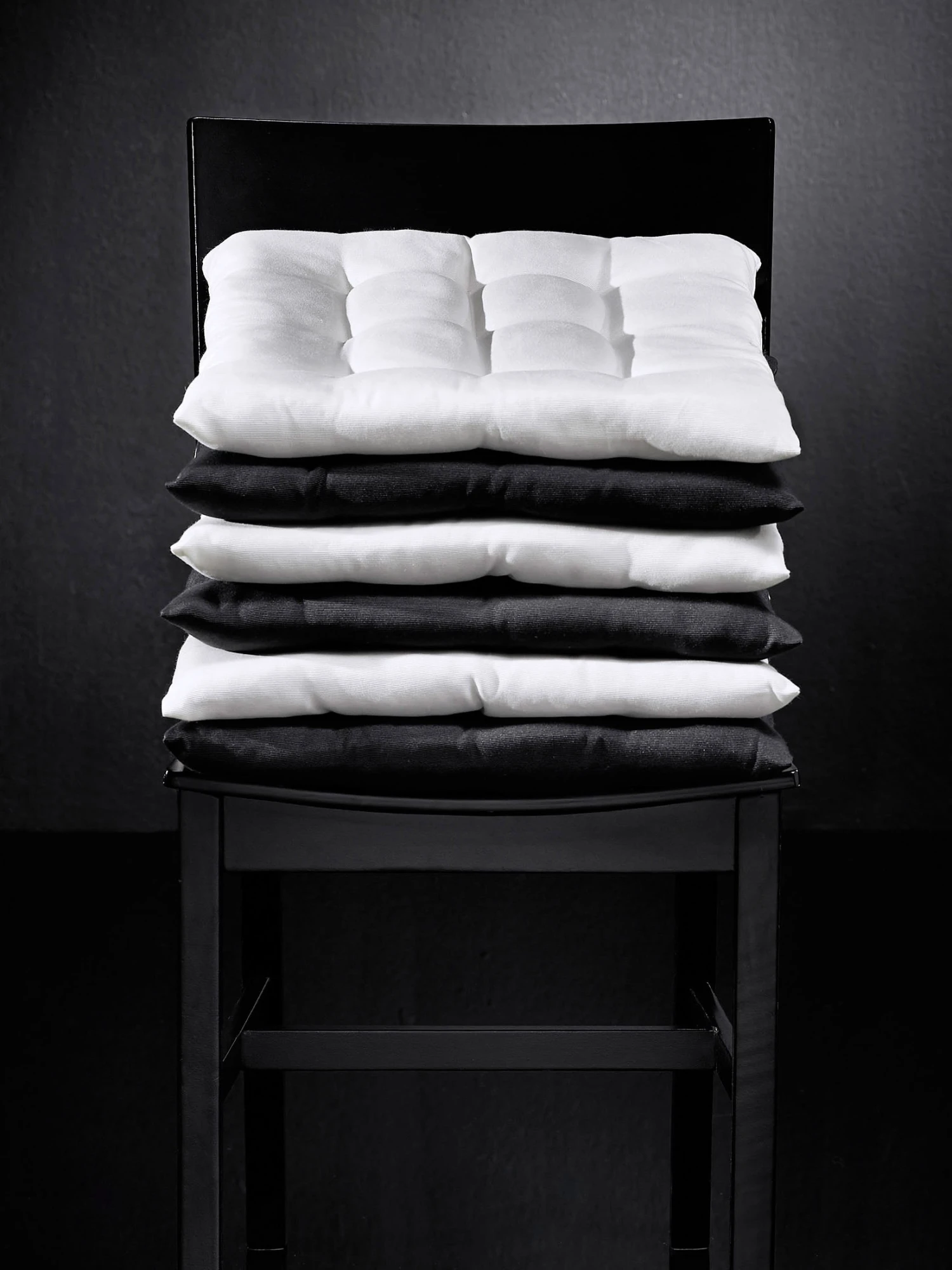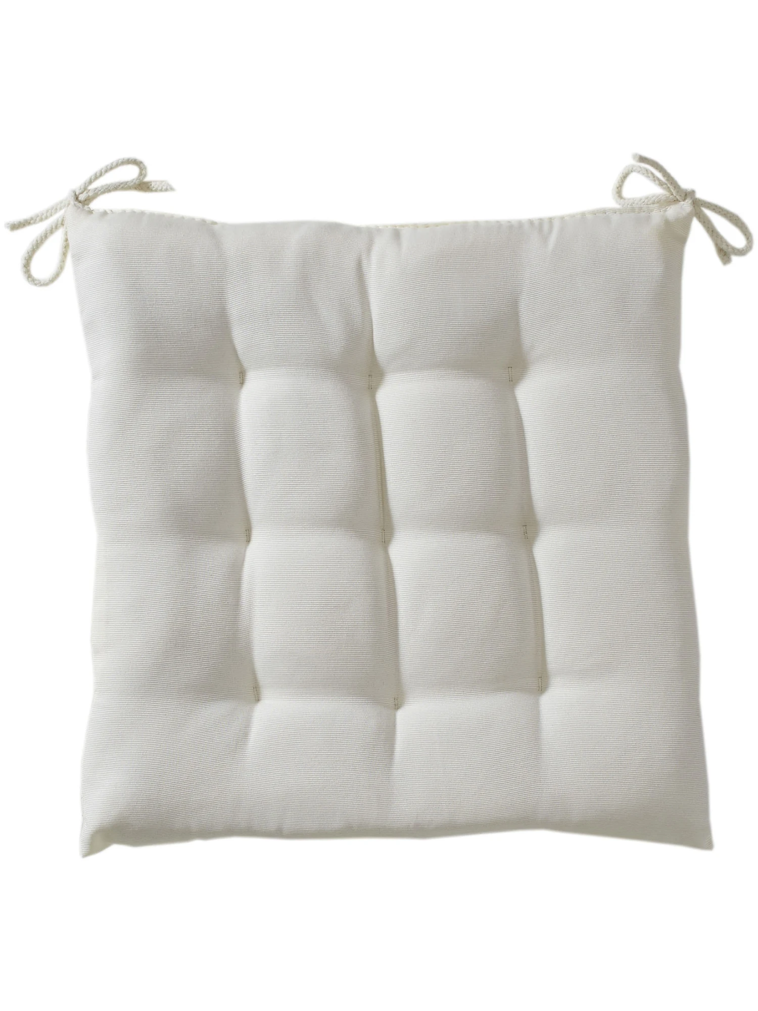 Gestepptes Stuhlkissen aus 55 % Baumwolle und 45 % Polyester, inklusive Füllung. Bis 40° C waschbar, Oeko-Tex Standard 100.