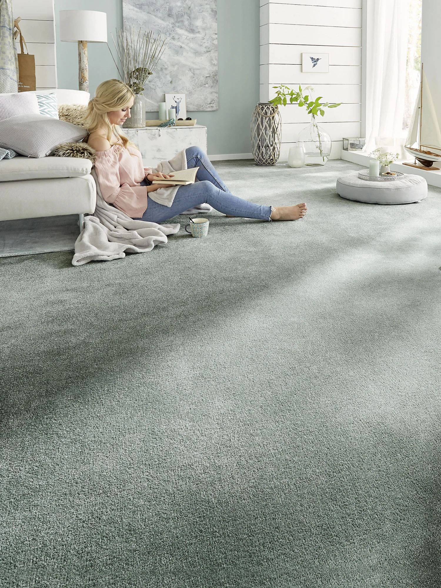 Mal ehrlich: wer braucht schon Möbel, wer braucht Stühle, Tische oder gar Betten, wenn ein Teppichboden wie EMOTION die Wohnung in eine derart einladende Landschaft verwandelt. Der leicht glänzende Flor aus Kräuselvelours lädt dazu ein, die Schuhe auszuziehen und ihn barfuß zu erleben – doch keine Sorge: das Material ist so strapazierfähig und pflegeleicht, das kann auch Schuhe gut vertragen. Und sogar Möbel, wenn Sie denn unbedingt darauf bestehen … Flormaterial: 100 % Polyamid.