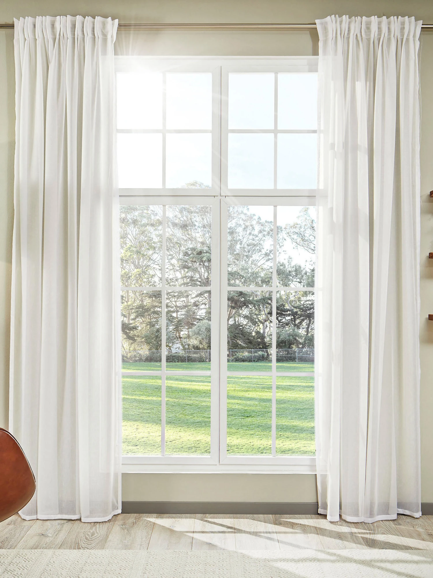 Dicht gewebter Vorhang mit verdeckten Schlaufen. Für Stange und Schiene geeignet. Fein strukturiert.
